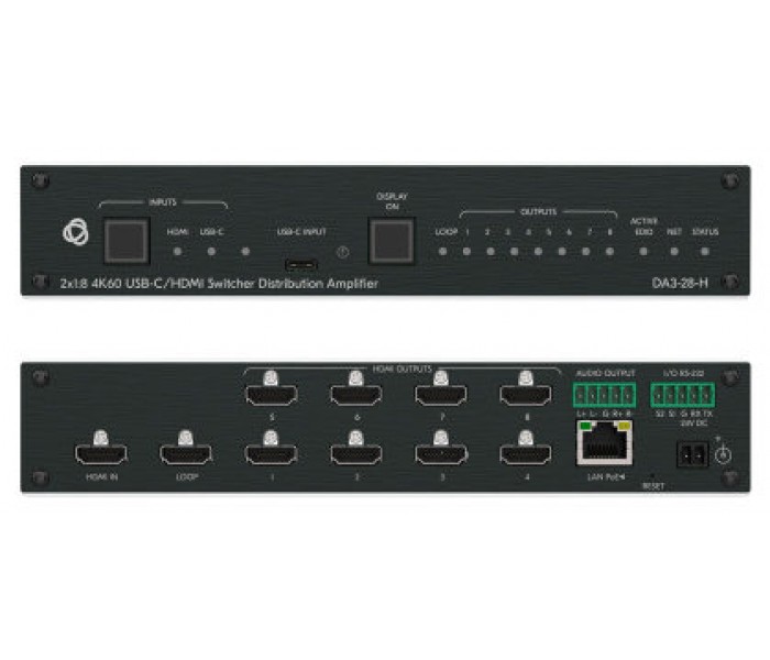 KRAMER AVSM 2X1:8 4K60 USB-C/HDMI SWITCHER DISTRIBUTION AMPLIFIER- DA3-28-H (10-00002890)