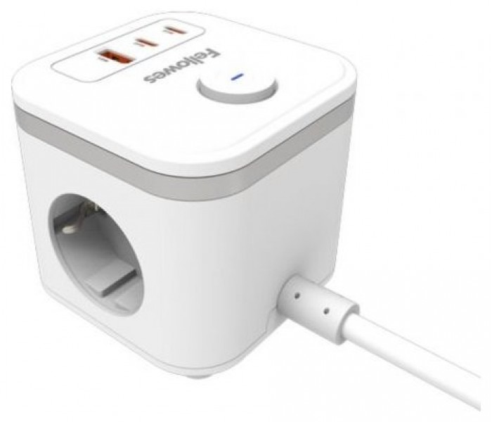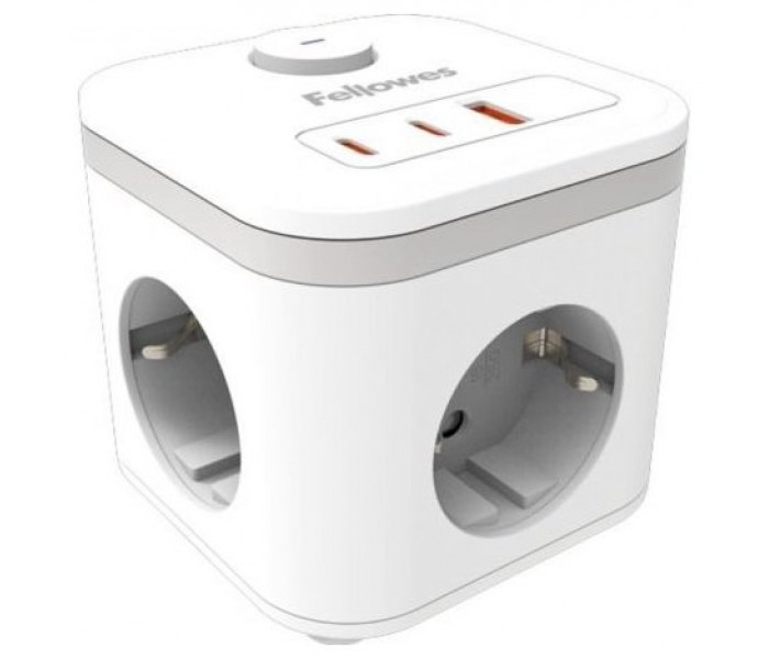 - Su forma cúbica reduce la acumulación de enchufes y deja más espacio para los dispositivos.