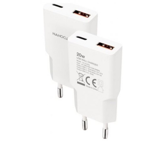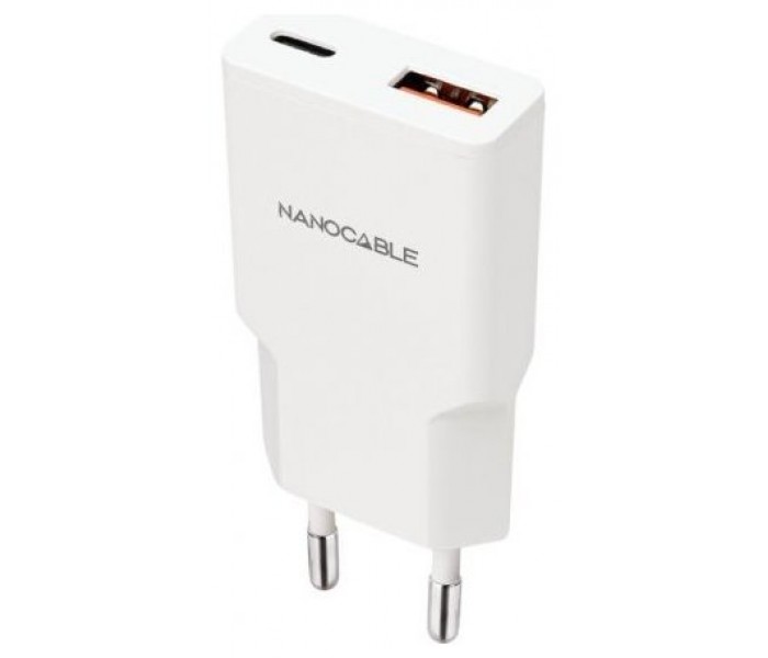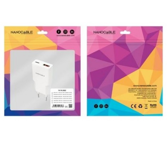 Nanocable Cargador USB-C/PD + USB-A/QC 20W Blanco
