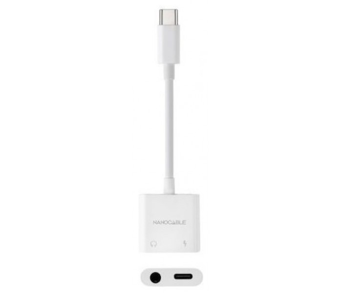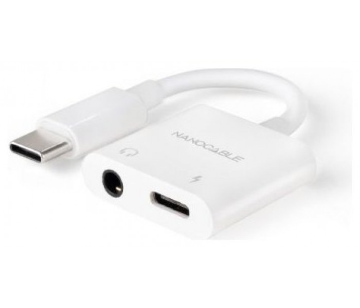 Adaptador de Audio USB-C/M a Jack 3.5/H + USB-C/H PD 60W, 11.5 cm, Blanco