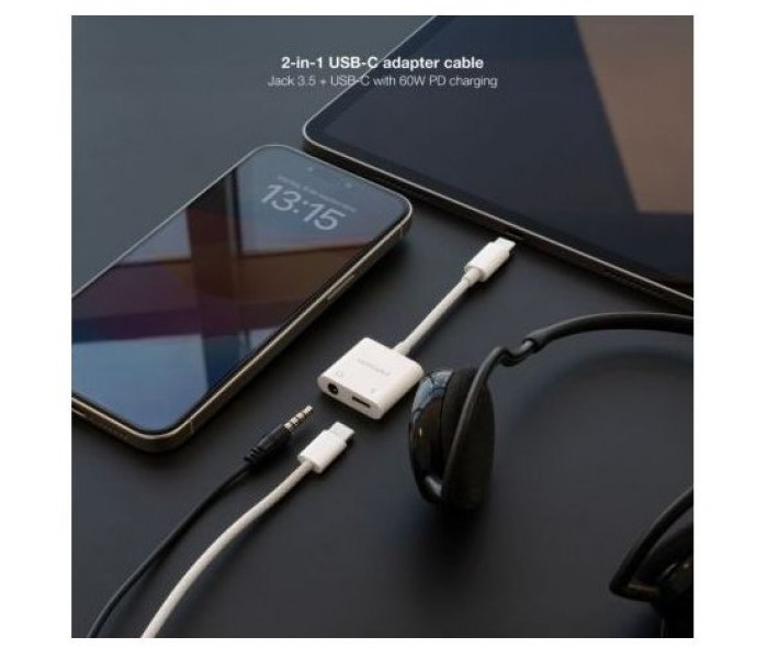 - Cable adaptador de USB-C macho a Jack 3.5 hembra y un USB-C de carga PD 60W