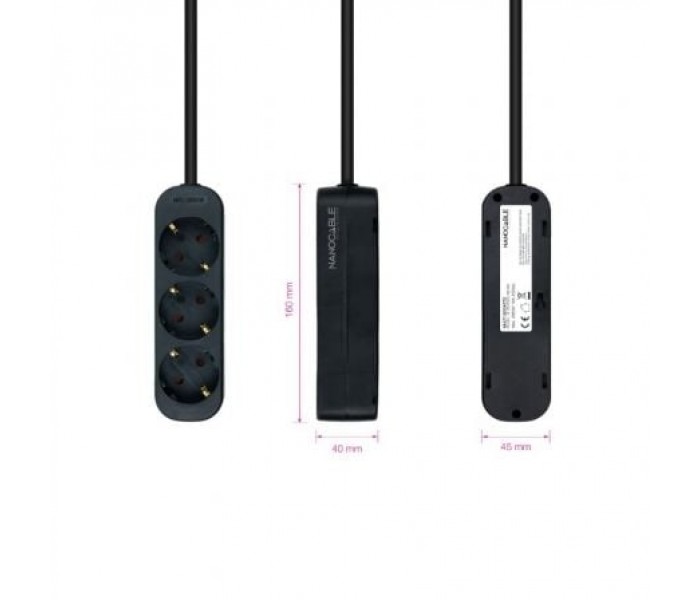 - 1 x Regleta de enchufes con 3 tomas, 1.4 m, Color Negro