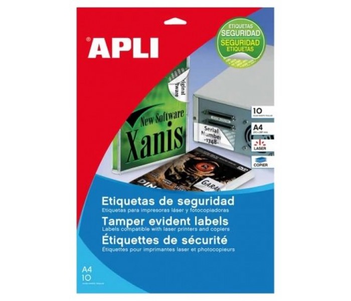 PAQUETE 10 HOJAS A4 ETIQUETAS DE SEGURIDAD POLIESTER PLATA 45,7 X 21,2MM APLI 11272 (Espera 4 dias)
