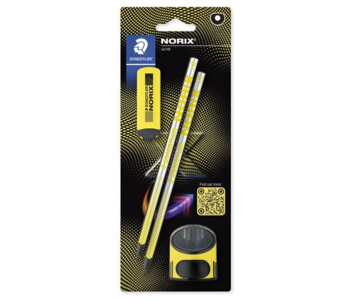 BLISTER CON 2 LÁPICES DE GRAFITO NORIX HB, AFILALÁPICES Y GOMA AMARILLO STAEDTLER 181 SBK2-1 (Espera 4 dias)