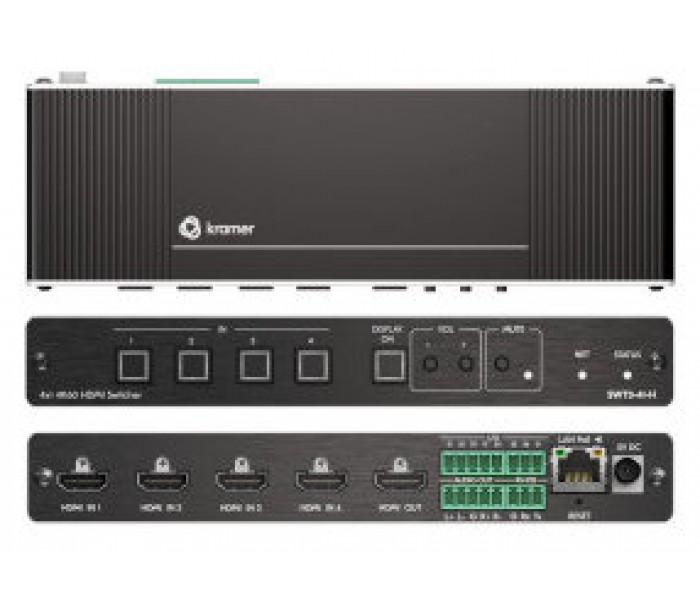 Kramer Electronics SWT3-41-H. Tipo de puerto de vídeo: HDMI. Máxima velocidad de actualización: 60 Hz, Formatos gráficos soportados: 3840 x 2160, Ancho de banda: 18 Gbit/s. Voltaje de entrada de adaptador AC: 5 V, Consumo de energía (max): 5,76 W, Consumo de energía: 120 mA. Certificación: CE, UL, RoHs, WEEE. Ancho: 195 mm, Profundidad: 59,6 mm, Altura: 27,4 mm