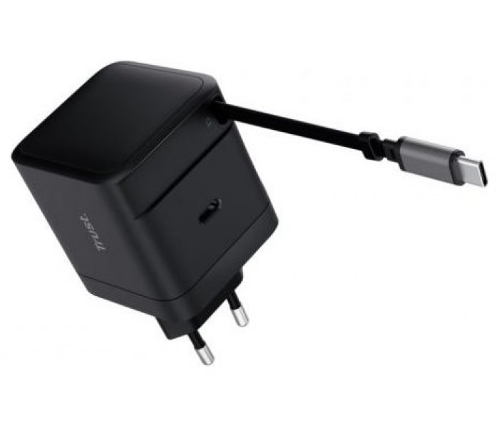 CARGADOR PARED/VIAJE USB-C 65W + CABLE USB-C RETRACTIL MAXO NEGRO TRUST (Espera 4 dias)