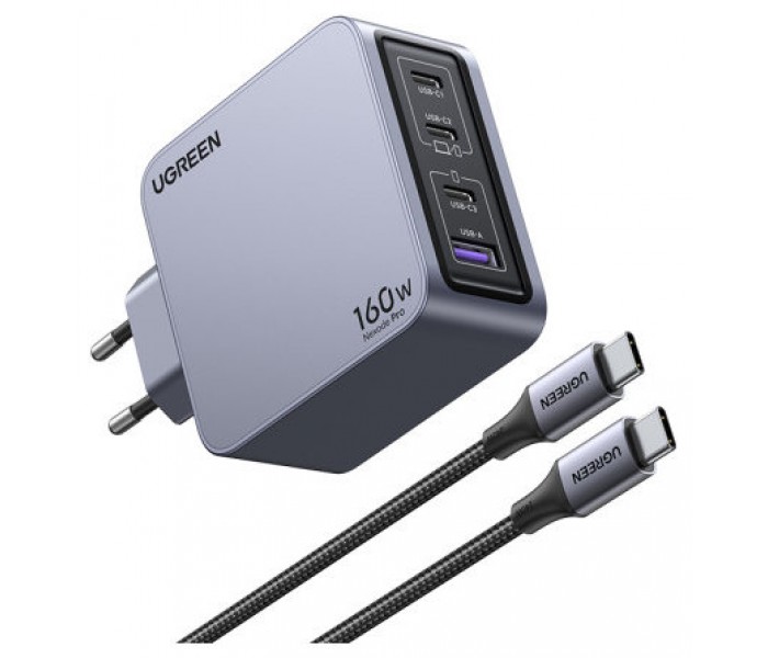 Ugreen Nexode Pro 160W GaN Charger with USB-C Cable. Tipo de cargador: Interior, Alimentación: Corriente alterna, Compatibilidad del cargador: Universal, Carga rápida, Funciones de protección de poder: Sobreintensidad, Sobrevoltaje, Sobrecalentamiento. Color del producto: Negro, Gris
