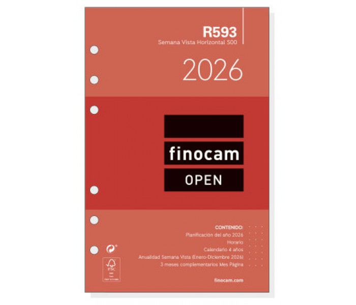 RECAMBIO ANUAL 2026 R593 OPEN500 117X181MM SEMANA VISTA HORIZONTAL FINOCAM 711580026 (Espera 4 dias)