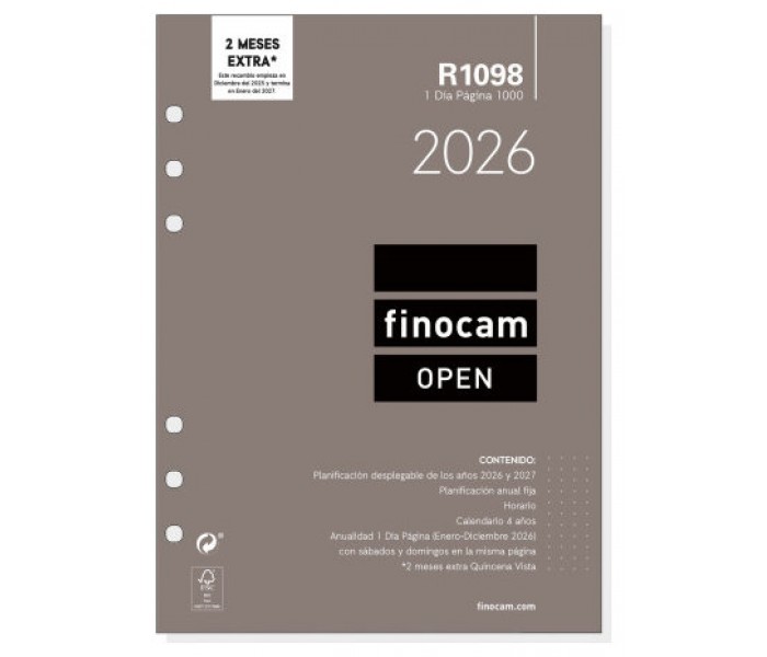 RECAMBIO ANUAL 2026 R1098 OPEN1000 155X215MM DIA PAGINA FINOCAM 711680026 (Espera 4 dias)