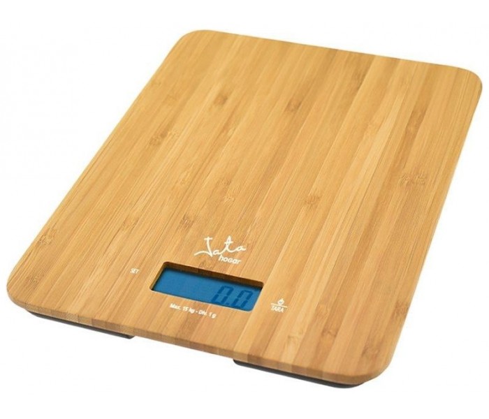 JATA ELECTRONIC KITCHEN SCALE 15KG MAX LCD TIMER AND CLOCK BAMBOO 720