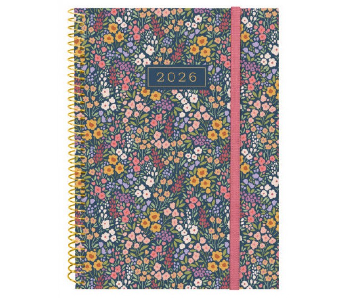 Agenda de espiral con tapas ligeras de polipropileno. Diseño en tendencia y a la moda. Ideal para uso personal y/o profesional. Con goma elástica. Con esquinas microperforadas para localizar rápidamente el día/semana en curso. El diseño interior es limpio y fácil, con espacio suficiente para organizar tus proyectos, tareas y compromisos. Agenda con información de interés en la anualidad y otros contenidos extra orientados a la organización personal. Formato similar a DIN A5 con las ventajas de una agenda portable y una de sobremesa. Duración: Enero 2026 - Diciembre 2026 (12 meses). Interior: Semana Vista Horizontal. Visión de la semana completa en horizontal que permite la escritura natural. Con espacio para concretar horario. Con información de los festivos de España. La anualidad de la agenda incluye la información relativa a: onomástica, festivos nacionales, cambios de estación e inicios de los años nuevos chino, musulmán, ortodoxo y hebreo. La agenda dispone también de otros contenidos extra: datos personales, calendarios, horarios, objetivos del año, plan anual, fechas importantes, otras fechas, hojas para checklist, hojas para notas, hoja para ocio y hojas para teléfonos, direcciones y e-mails. Artículo en español con anualidad multilingüe: español, euskera, gallego y catalán. Formato: E10 - 155x212 mm. Tapas de polipropileno, espiral simple metálica y papel. 80 g/m². Papel FSC®.