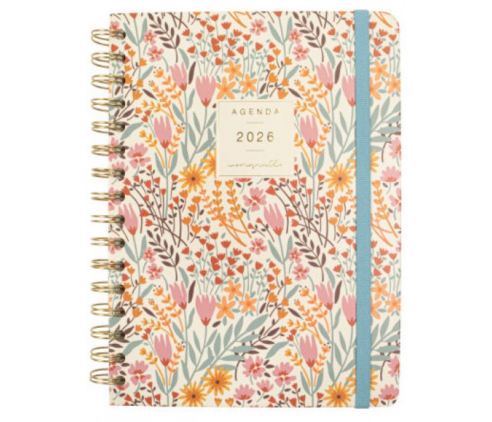 Agenda de tapa dura de cartón forrado con peliculado mate antirrayaduras. Con espiral doble, goma elástica y esquinas microperforadas para localizar rápidamente el día/semana en curso. Esta agenda se ha creado en colaboración con la diseñadora e ilustradora Moniquilla, obteniendo unas agendas bonitas y funcionales. Con una estética limpia y minimalista, contiene información de interés en la anualidad y otros contenidos extra. Además, dispone de dos marcapáginas y de adhesivos temáticos orientados a la organización personal. Formato similar a DIN A5 con las ventajas de una agenda portable y una de sobremesa. Duración: Enero 2026 - Diciembre 2026 (12 meses). Interior: Semana Vista Horizontal. Visión de la semana completa en horizontal que permite la escritura natural. Con planificación mensual cuadriculada al inicio de cada mes. Con información de los festivos de España. La anualidad de la agenda incluye: festivos nacionales, cambios de estación y días señalados. Contiene planificación mensual cuadriculada con las fases lunares intercalada en la anualidad. La agenda también dispone de otros contenidos extra: datos personales, calendarios, planificación anual en columnas, horarios, objetivos personales, planes, maleta, apartado para libros/películas/series/pódcast, hojas para anotaciones y tareas, contactos, adhesivos temáticos y dos marcapáginas. Idioma del artículo: español. Formato: E10 - 155x212 mm. Tapas de cartón forrado con peliculado mate antirrayaduras. Espiral doble metálica. Papel. 80 g/m². Papel FSC®.