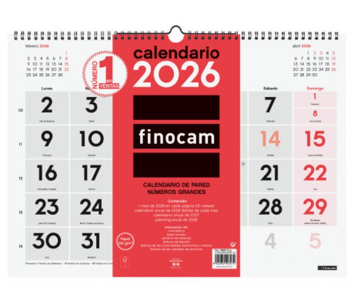 CALENDARIO 2026 NEUTRO PARED NUMEROS GRANDES L 430X310MM FINOCAM 780010026 (Espera 4 dias)