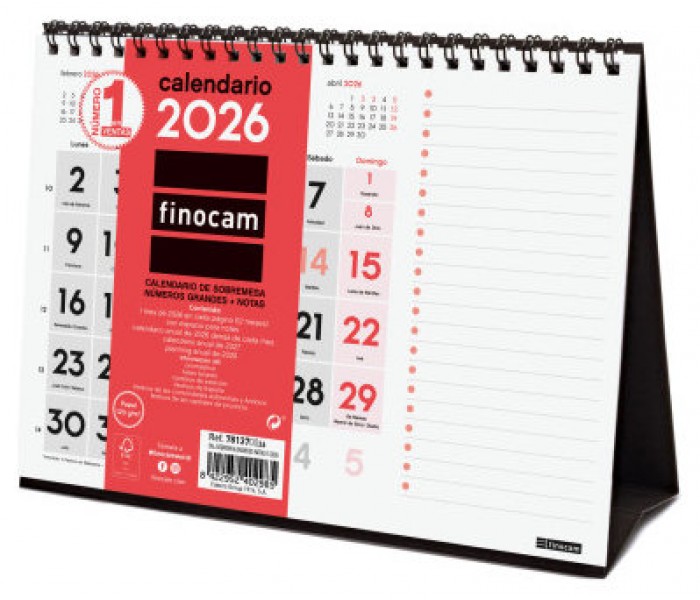CALENDARIO 2026 SOBREMESA NEUTRO NUMEROS GRANDES+NOTAS S 210X150MM FINOCAM 781370026 (Espera 4 dias)