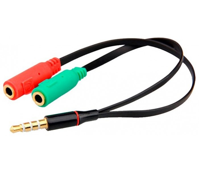Cable adaptador de conexión de audio para unificar 2 cables (micróno y auriculares) en uno sólo.