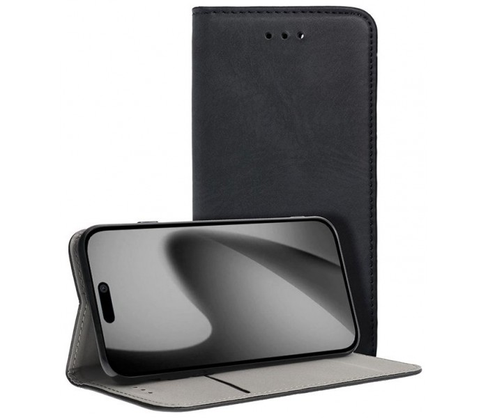 Apertura lateral tipo libro. Incorpora una carcasa específica del modelo de smartphone, para incrustarlo y dejarlo perfectamente encajado.