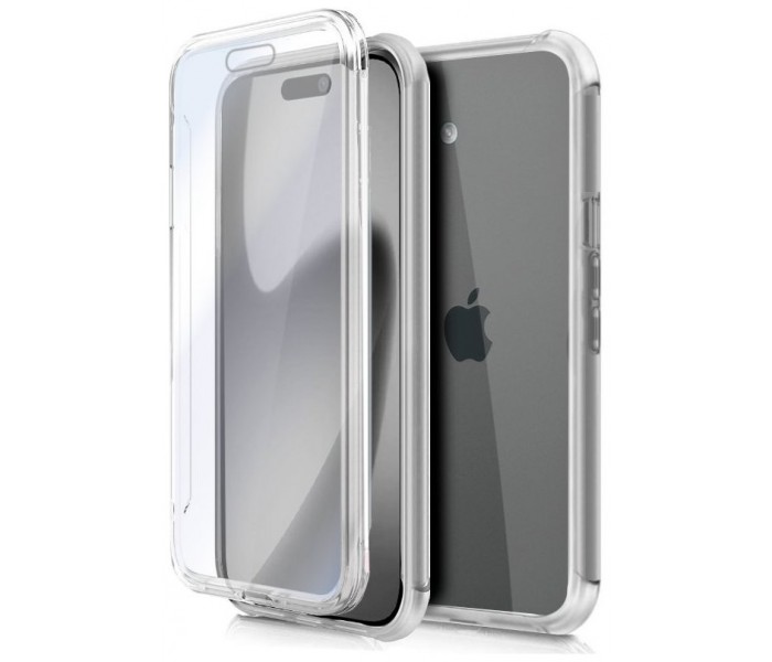 Funda resistente para móvil, de tipo transparente, silicona semirígida 360º, cubre parte frontal y trasera del smartphone.