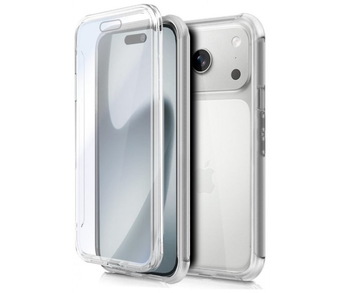Funda resistente para móvil, de tipo transparente, silicona semirígida 360º, cubre parte frontal y trasera del smartphone.