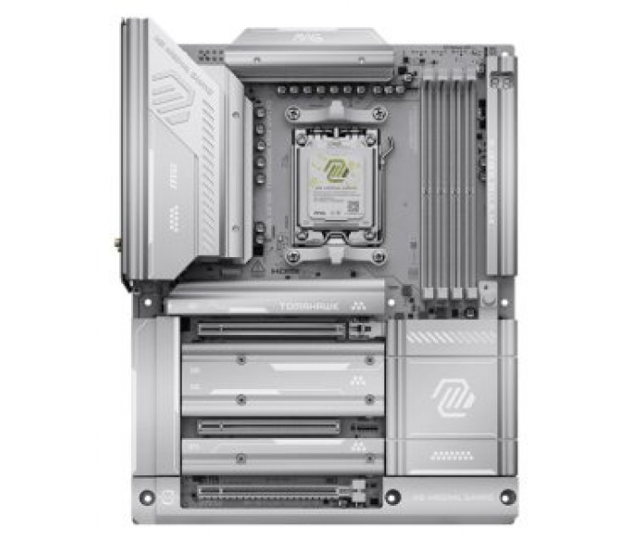 MSI MAG X870E TOMAHAWK MAX WIFI PZ. Fabricante de procesador: AMD, Socket de procesador: Zócalo AM5, Procesador compatible: AMD Ryzen 7000 Series, AMD Ryzen 8000 Series, AMD Ryzen 9000 Series. tipos de memoria compatibles: DDR5-SDRAM, Memoria interna máxima: 256 GB, Tipo de ranuras de memoria: DIMM. Interfaces de disco de almacenamiento soportados: M.2, SATA III, Tipos de unidades de almacenamiento admitidas: HDD & SSD. Tipo de interfaz ethernet: 5 Gigabit Ethernet, Controlador LAN: Realtek RTL8126, Estándar Wi-Fi: Wi-Fi 7 (802.11be). Componente para: PC, Factor de forma: ATX, Familia del chipset: AMD