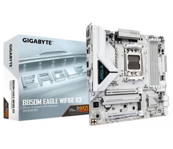 PLACA GIGABYTE B850M EAGLE WIFI6E ICE (BLANCO),AMD,AM5,B850,4DDR5,256GB,1HDMI+1DP,4SATA3+3M.2,GBELAN+WIFI6E+BT5.3,4USB3.2,MATX