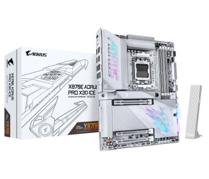 PLACA GIGABYTE X870E AORUS PRO X ICE,AMD,AM5,X870E,4DDR5,256GB,1HDMI+2USB4,4SATA6+2M.2,5GBLAN+WIFI7+BT5.4,7USB3.2,ATX