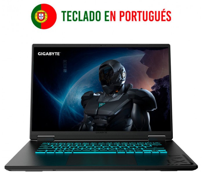 El portá,til GIGABYTE GAMING A16 está, impulsado por un procesador AMD Ryzen 200 Series, GPUs para portá,tiles NVIDIA GeForce RTX 50 Series y una pantalla de alta frecuencia de actualizació,n de 165Hz. Con su relació,n de aspecto amplia de 16:10 y una bisagra que se abre hasta 180°,, este portá,til apoya todas tus batallas e incluso tu vida cotidiana.. Teclado en portugué,s