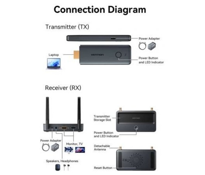 Vention Transmisor y receptor HDMI inalámbrico de nivel empresarial