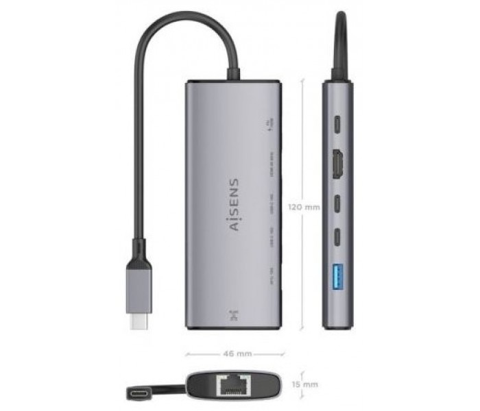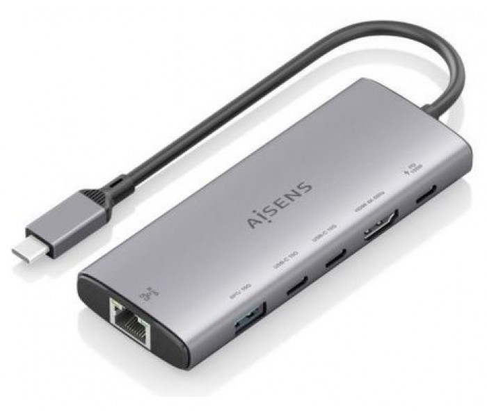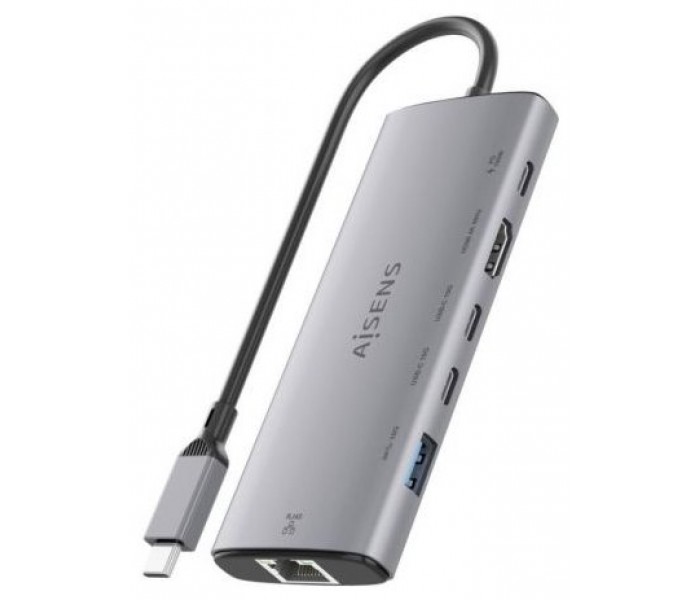 AISENS – USB-C DOCK 6 en 1, USB-C a 1xHDMI, 1xRJ45, 1xUSB-A 10G, 2xUSB-C 10G, 1xUSB-C PD, Gris, 20CM