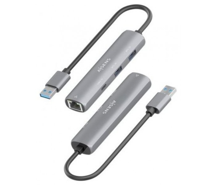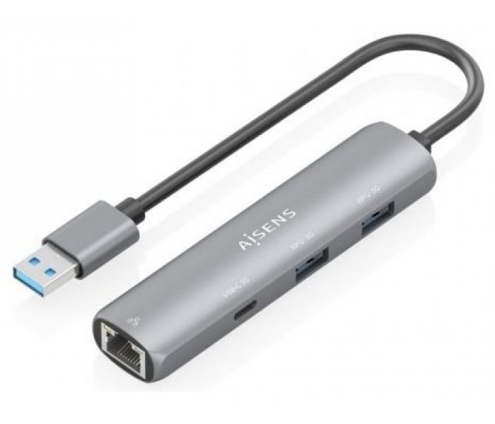 ASUC-4P035-GR – USB3.0 Dock USB-A a Ethernet Gigabit + HUB 1xUSB-C+2xUSB-A, GRIS, 15cm