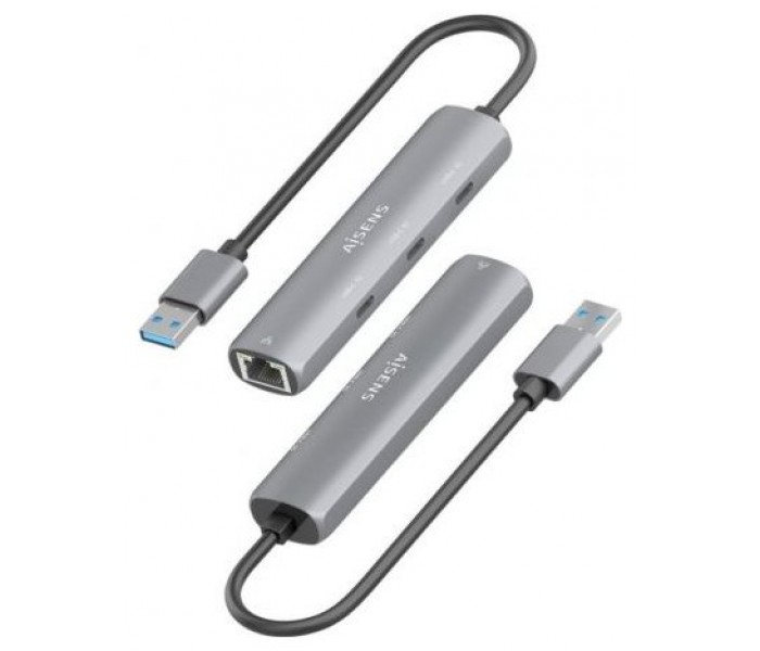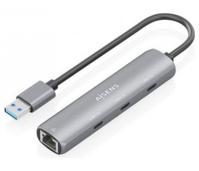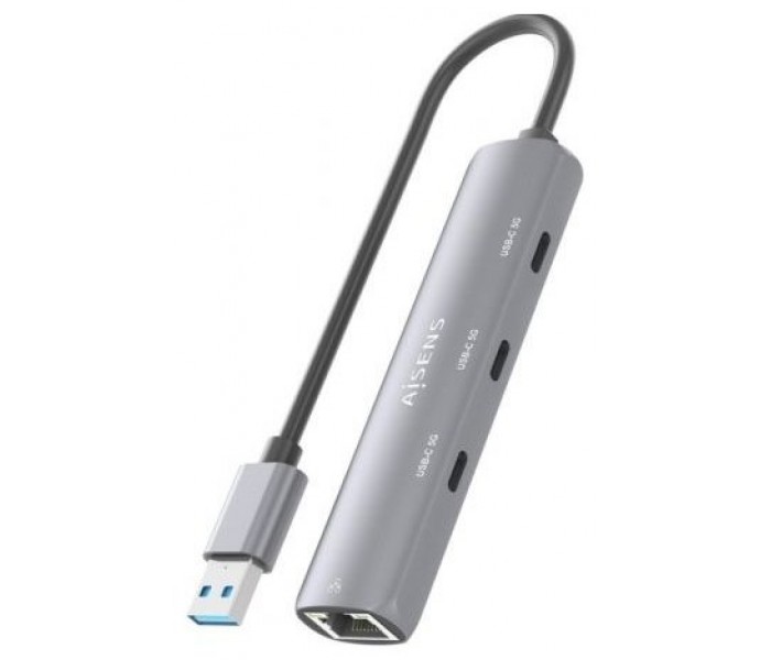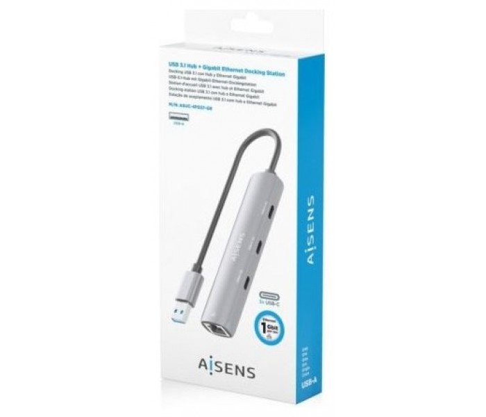 ASUC-4P037-GR – USB3.0 Dock USB-A a Ethernet Gigabit + HUB 3xUSB-C, Gris, 15cm