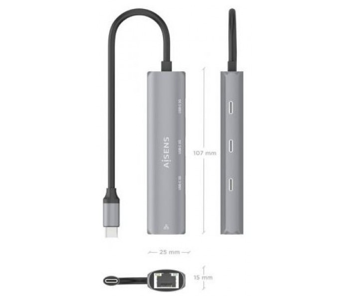 Hub USB Aisens ASUC-4P035-GR/ 1xUSB Tipo-C/ 2xUSB/ 1xRJ45/ GrisASUC-4P035-GR – USB3.0 Dock USB-A a Ethernet Gigabit + HUB 1xUSB-C+2xUSB-A, GRIS, 15cmConversor USB-A a Gigabit ethernet, 1xUSB-C 5G, 2xUSB-A 5GLa solución más rápida de USB 3.0 a Gigabit ethernet que garantiza gran velocidad de transferencia con USB 3.0 macho en un extremo y RJ45 hembr..