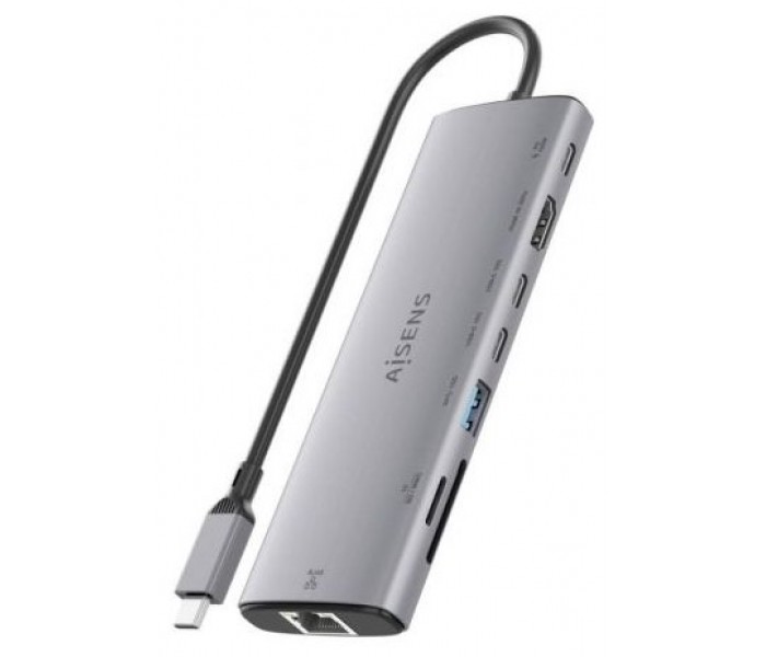 ASUC-8P033-GR – USB-C Dock 8 en 1, USB-C a 1xHDMI, 1xRJ45, 1xUSB-A 10G, 2xUSB-C 10G, 1xSD, 1xMicro SD, 1xUSB-C PD 100W, Gris, 20CM