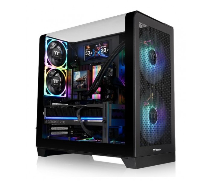 Thermaltake View 390 Air. Factor de forma: Midi Tower, Tipo: PC, Color del producto: Negro. Factores de forma de la fuente de alimentación compatibles: PS2. Diámetro de ventiladores frontales soportados: 120,140,200 mm, Diámetro de ventiladores secundarios soportados: 120 mm, Ventiladores traseros instalados: 2x 120 mm. Tamaños de disco duro soportados: 3.5", Factor de forma de disco SSD: 2.5". Ancho: 287 mm, Profundidad: 485 mm, Altura: 503 mm