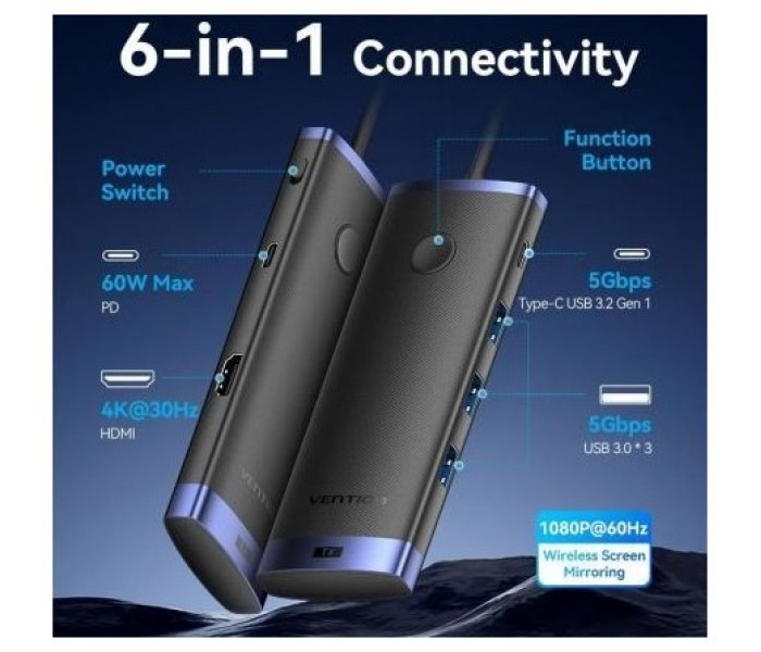 - Nombre: Estación de acoplamiento HDMI inalámbrica USB-C 6 en 1