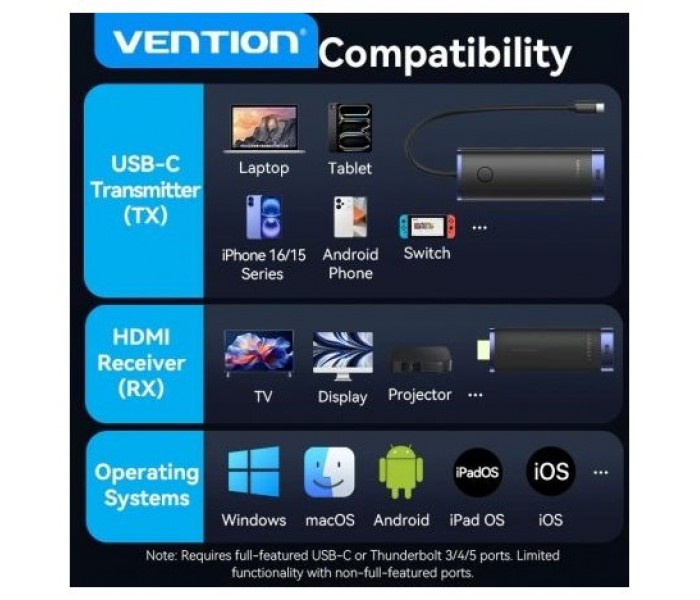 Adaptador/Transmisor de vídeo inalámbrico USB Tipo-C 3.2 - HDMI Vention TPVBB