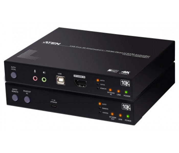 ATEN CE990. Tipo: Transmisor y receptor, Tecnología de conectividad: Alámbrico, Distancia de transferencia máxima: 10000 m. Tipo de puerto de transmisor de vídeo: DisplayPort, Tipo de puerto de transmisor local de vídeo: HDMI, Transmisor local teclado/ratón tipo de puerto: USB. Tipo de puerto de receptor local de vídeo: DisplayPort, Receptor para teclado local/tipo de puerto para ratón: USB. Tasa de transferencia de datos USB: 480 Mbit/s. Voltaje de salida de adaptador AC: 12 DC, Consumo de energía (transmisor) (max): 11,89 W, Consumo de energía (receptor) (max): 9,49 W