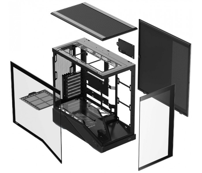 Sus laterales disponen de paneles microperforados que, junto con la parrilla superior y el diseño interior aerodinámico, crean un flujo de aire dirigido que mejora especialmente la ventilación de la PSU y los componentes inferiores, zonas tradicionalmente más problemáticas en términos de temperatura.