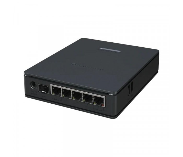 | Características | - RouterOS v7 (licencia nivel 4) - Arquitectura ARM 32 bit - Chip de switch EN7523 - Refrigeración pasiva - Monitor de temperatura de CPU - MTBF aproximado 100.000 horas a 25 °C - Rango de temperatura probado: -40 °C a 70 °C PoE - PoE-in pasivo (18–28 V) - PoE-out pasivo en Ether5 - Potencia total de salida PoE 16,8 W Alimentación - 2 x entradas DC (jack DC y PoE-in) - Voltaje de entrada DC: 12–28 V - Consumo máximo: 34 W - Consumo sin periféricos: 11 W Contenido - Adaptador de corriente 24 V / 1,5 A |