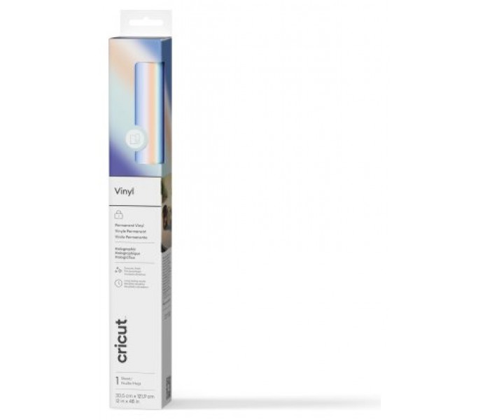Cricut 2011349. Tipo de producto: Rollo de vinilo de termotransferencia, Color del producto: Azul, Coloración: Holográfico. Ancho: 305 mm, Longitud: 1200 mm. Tipo de embalaje: Envase para colgar