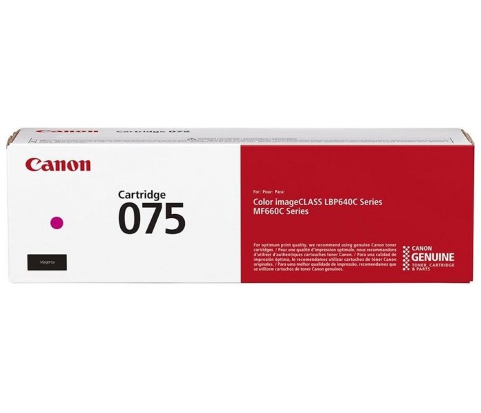 El Canon 075 es un cartucho de tóner láser en color magenta diseñado para ofrecer una impresión de alta calidad y un rendimiento fiable. Con capacidad para imprimir hasta 1300 páginas, está pensado para usuarios y oficinas que buscan documentos con colores intensos y consistentes, garantizando la mejor compatibilidad con impresoras Canon.
