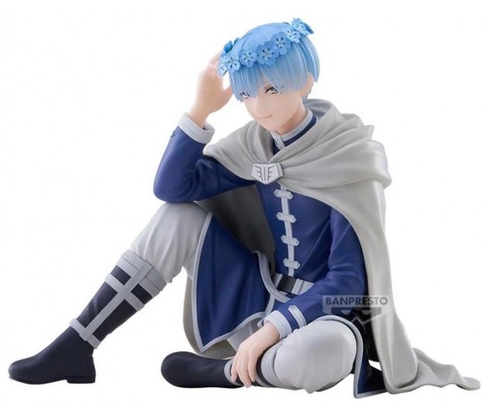 Figura de Himmel de 15 cm de altura perteneciente a la colección Espresto, inspirada en la serie Sousou no Frieren. Representa al carismático héroe en una pose serena, sentado y luciendo una delicada corona de flores azules.