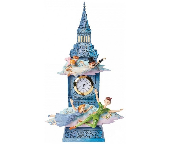 big ben - con peter - wendy - john y michael volando por el cielo - en ruta a neverland. viene en una caja de regalo. diseñado por el galardonado artista y escultor jim shore para la marca disney