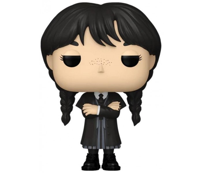 La icónica y enigmática **Wednesday Addams** llega a tu colección en forma de figura POP! Vinyl, vestida con su característico **abrigo negro** tal como aparece en la serie de Netflix. Esta versión está inspirada en su paso por la **Academia Nevermore**, donde Wednesday pone a prueba su intelecto y habilidades detectivescas en una trama llena de misterios y oscuridad. Ideal para fans del universo Addams y coleccionistas de figuras de televisión y cine.