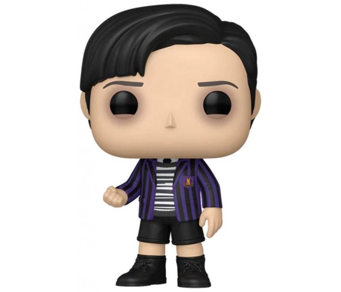 Con su característico estilo "cabeza grande", el Funko POP! de **Pugsley Addams** captura a la perfección la estética inquietante y encantadora del personaje. Su atuendo escolar y expresión enigmática están inspirados directamente en su aparición en la serie **Wednesday**, ofreciendo un acabado que encantará tanto a coleccionistas como a nuevos seguidores.