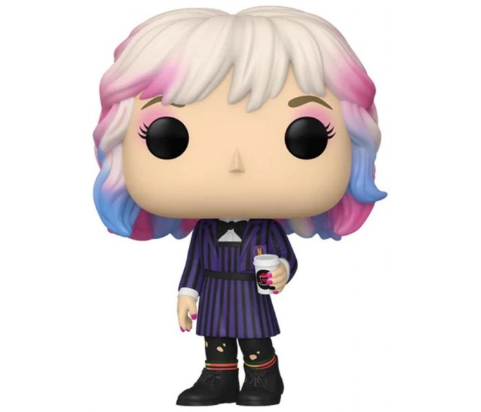 Esta versión exclusiva de Enid Sinclair la muestra con su inseparable taza de café, en una postura relajada pero lista para volver a clases. Fabricada en vinilo de alta calidad, mantiene el estilo característico de los Funko POP! con una estética encantadora y expresiva.
