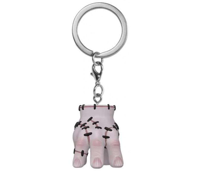 Basado en el personaje **Thing** tal como aparece en la serie **Wednesday**, este llavero captura todos los detalles característicos con el inconfundible estilo de Funko POP!. Su tamaño compacto lo hace ideal tanto para usarlo como accesorio diario como para exhibirlo en tu colección.