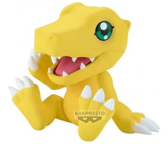 La figura captura la esencia valiente y simpática de Agumon en una pose característica, lista para la acción. Su acabado suave y sus proporciones estilizadas reflejan el característico estilo de la línea **Sofvimates**, centrada en figuras accesibles pero visualmente impactantes.