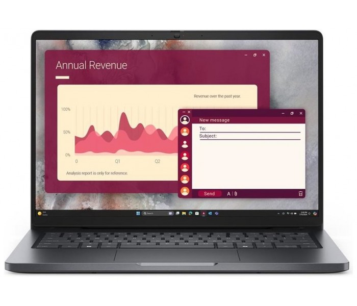 El Dell Pro 14 PC14250 es un ordenador portátil profesional diseñado para quienes buscan rendimiento, seguridad y movilidad. Con un diseño ligero de solo 1,36 kg y acabados en color magnetita, integra la potencia de los procesadores Intel Core de 13.ª generación, memoria DDR5 de última generación y almacenamiento rápido SSD PCIe 4.0. Todo ello lo convierte en una opción ideal para profesionales, estudiantes avanzados y teletrabajadores que requieren fiabilidad y productividad en su día a día.