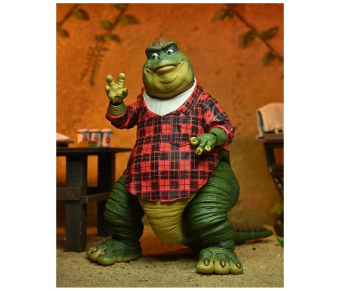 Neca presenta, dentro de la colección Scale Action, la figura de Ultimate Earl Sinclair. La figura está basada en la serie de tv ""Dinosaurs"", mide 18 cm. y está totolmente articulada (cola incluida). Creadas por Jim Henson para la divertida y prehistórica serie, se incluyen múltiples accesorios: 1x mando a distancia, 6x latas de bebidas, 1x gorro de capitán, 1x taza Ferhill, 1x cabeza opcional y 6x manos opcionales.