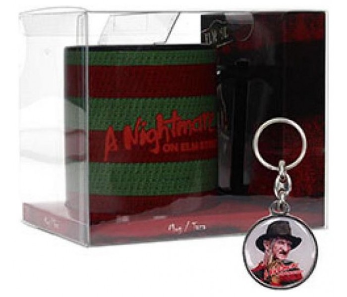 Duerme si puedesâ?¦ Esta taza inspirada en Pesadilla en Elm Street presenta un diseño colorido con los tonos caracterÃsticos de Freddy Krueger. Un artÃculo imprescindible para los seguidores de la saga, acompañado de un llavero metálico de regalo.